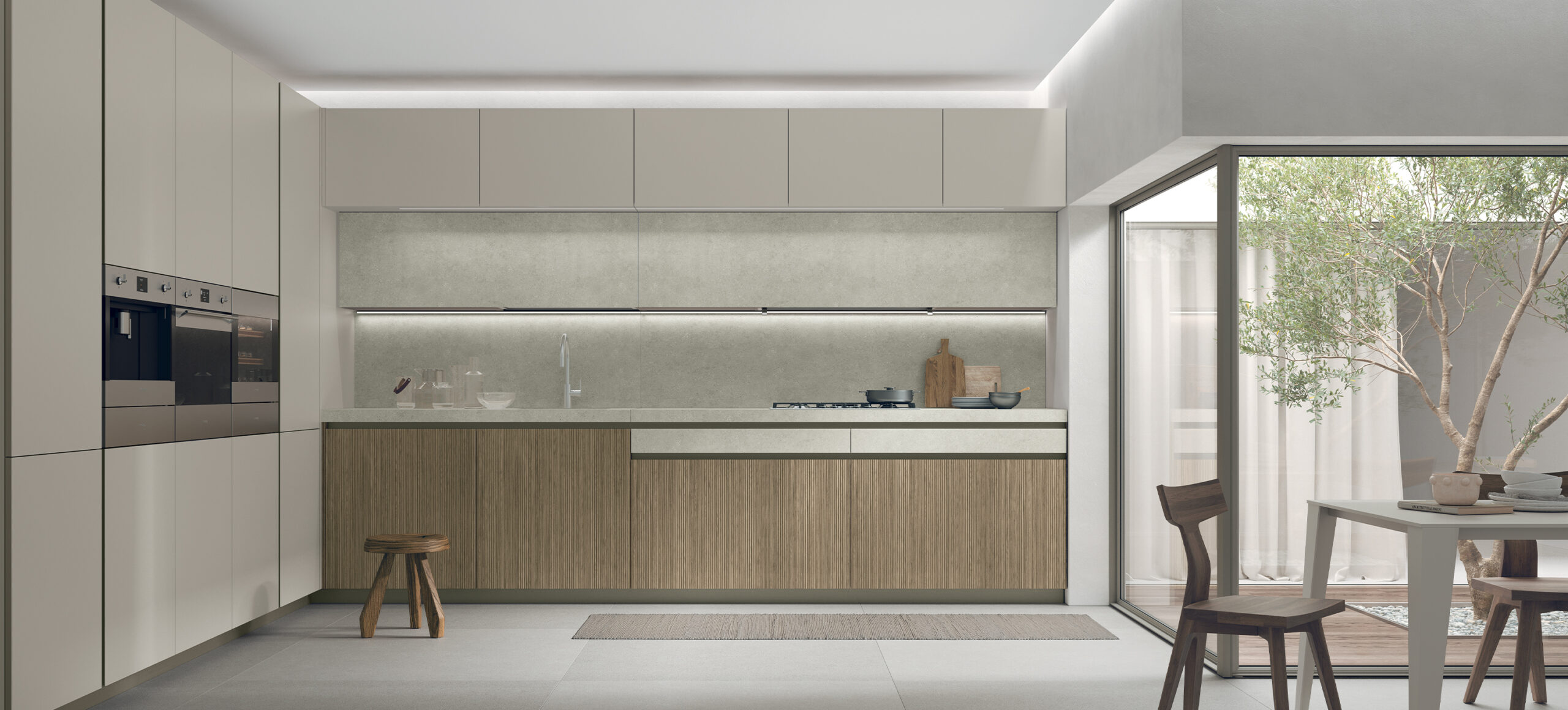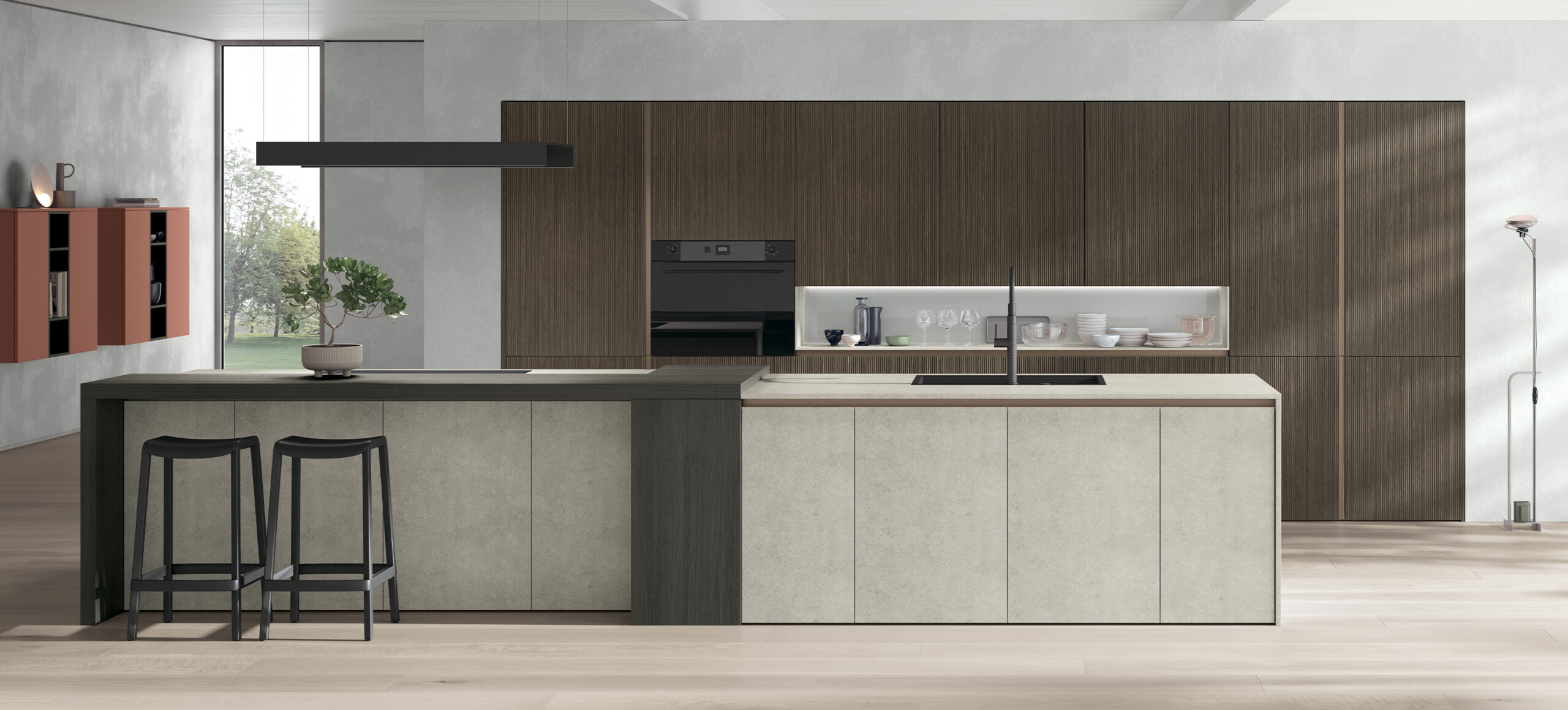 Con Aliant, il materiale è protagonista assoluto: il vetro, capace di dare profondità ai colori e leggerezza all’ambiente domestico e di nobilitare ogni spazio, che nelle due versioni, lucida e opaca, permette di giocare coi riflessi propri di un materiale senza tempo; l’HPL che, declinato in texture materiche, si presenta come un laminato ad alta prestazione, resistente e versatile nel creare superfici continue che integrano perfettamente lavabo e zona cottura una grande resa visiva. E infine Neolith (marchio registrato), la pietra sinterizzata creata dall’uomo partendo da materie prime naturali al 100%, in cui eleganza e durabilità convergono in un unico prodotto dalle caratteristiche uniche.